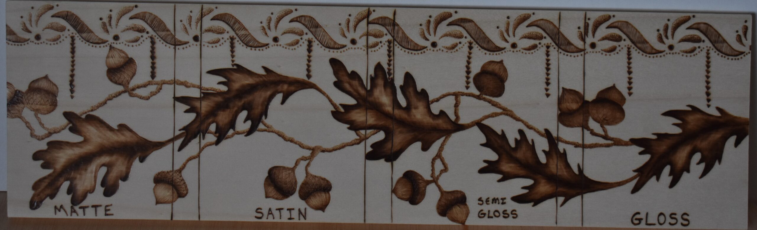 This blog is a “how to” or “informational page” on the different products used to seal/finish fine art. It is written in part (ok, mostly) by Todd as he’s the expert in our household on this subject. Todd also creates and preps most of the boards that I burn on (yes, I’m a very lucky person). Not only will he discuss sealing the wood, but he’ll mention prepping the wood for optimal burning. Without further ado…