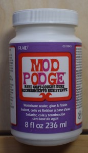 Mod Podge is a waterbase sealer, glue, and finish. It’s found in craft stores and doesn’t have a strong odor.