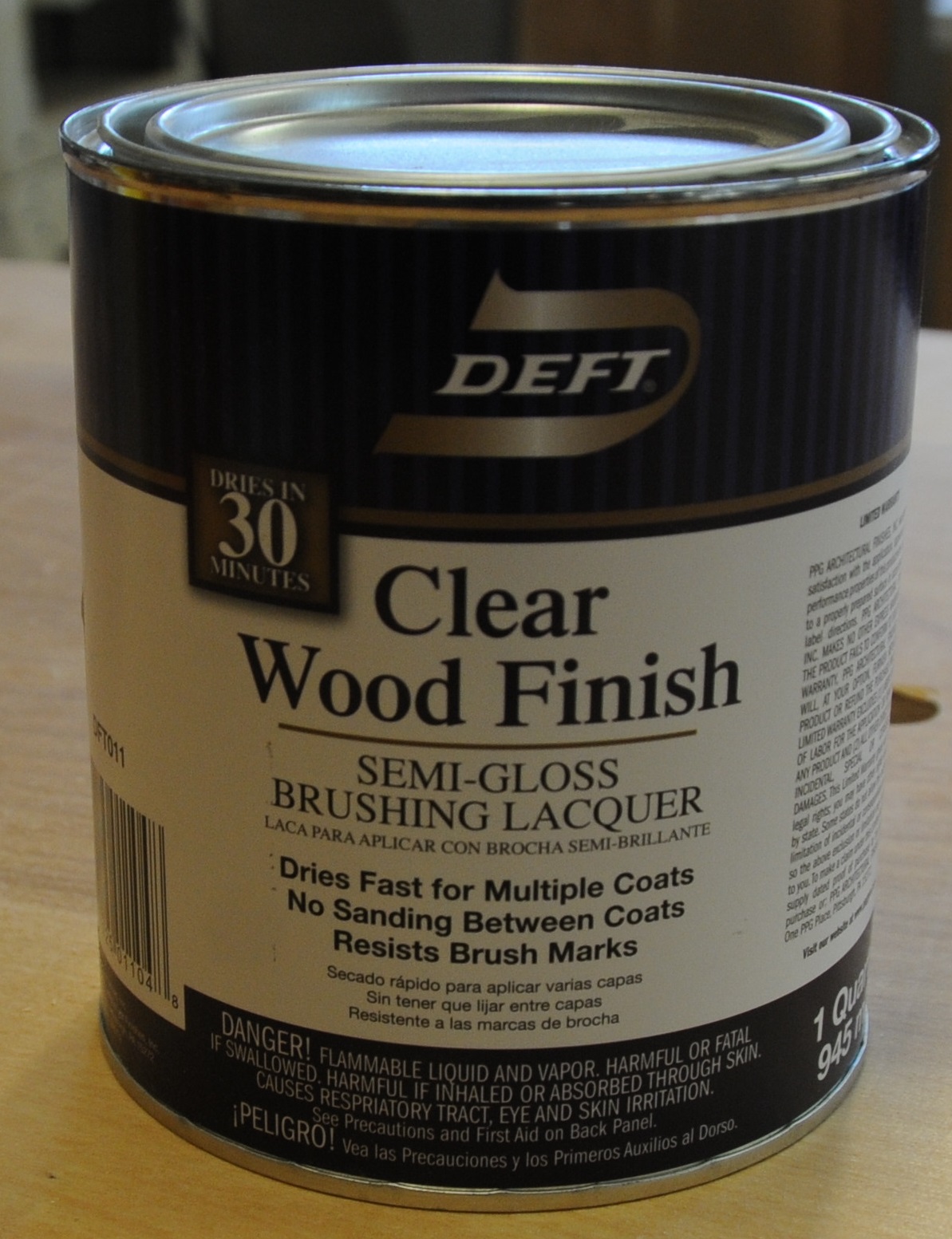 Lacquer offers a tough, durable finish. It can age over time, but is fairly easy to repair without sanding down the wood. Lacquer can be sprayed or brushed on. It can be thinned down with Lacquer Thinner to the consistency you desire. It comes in satin, gloss, or high gloss.