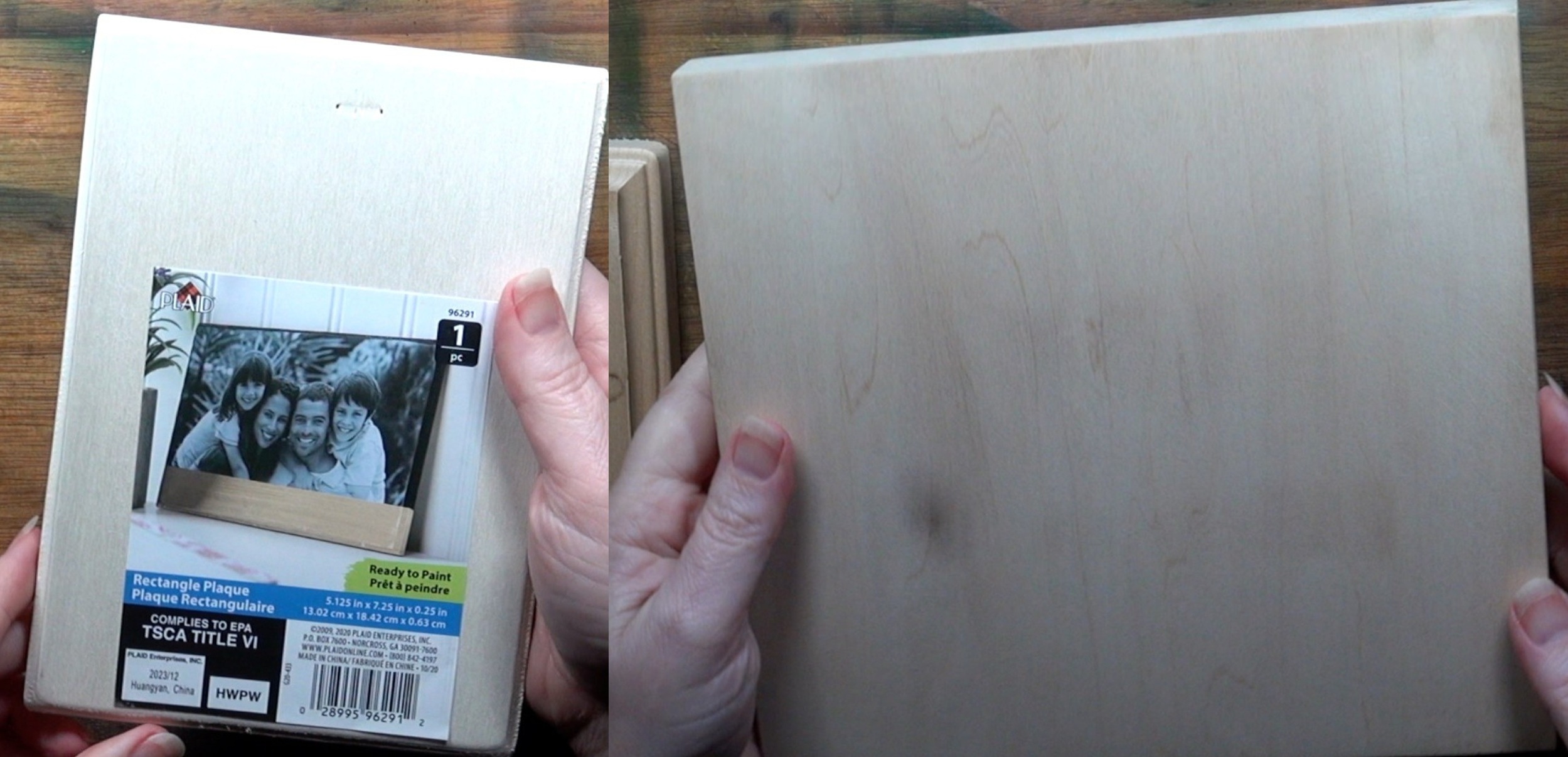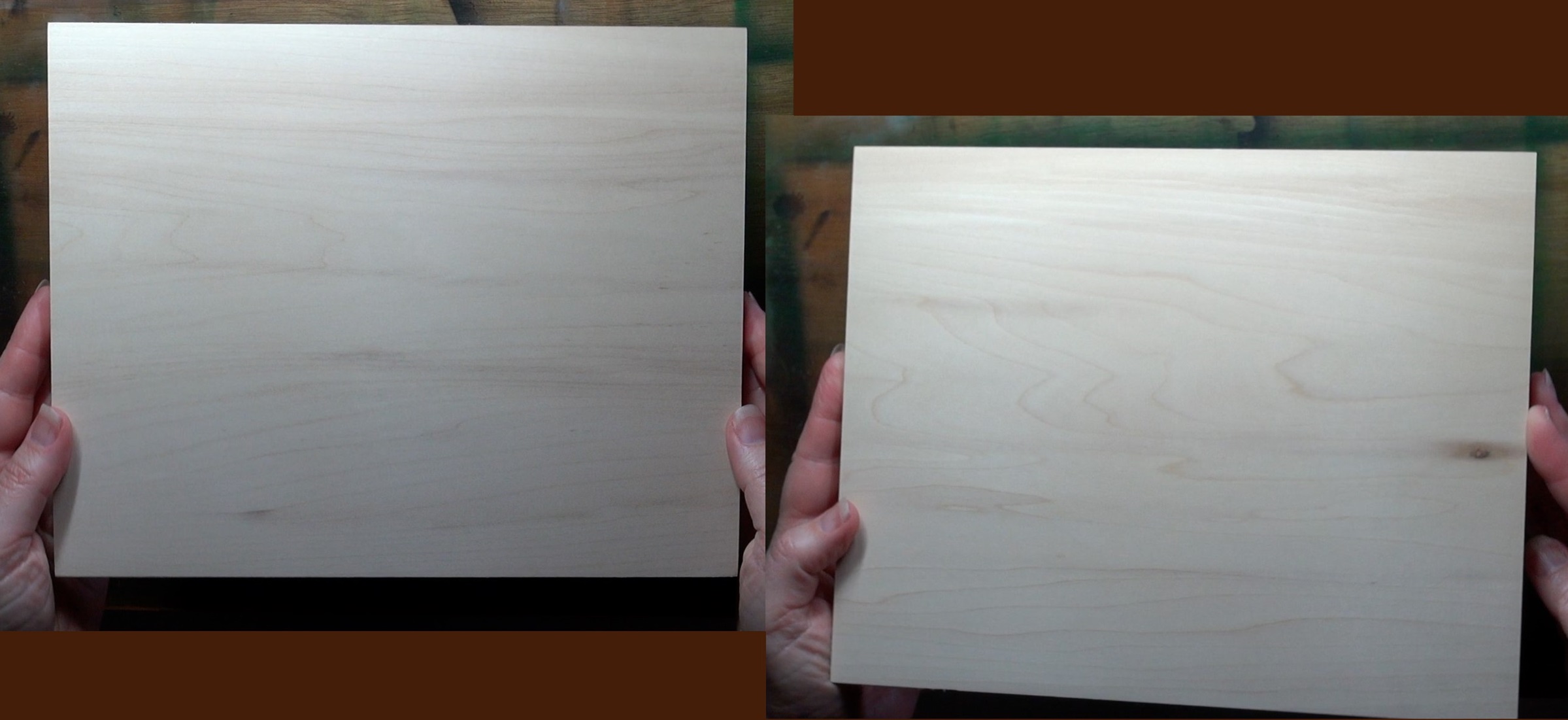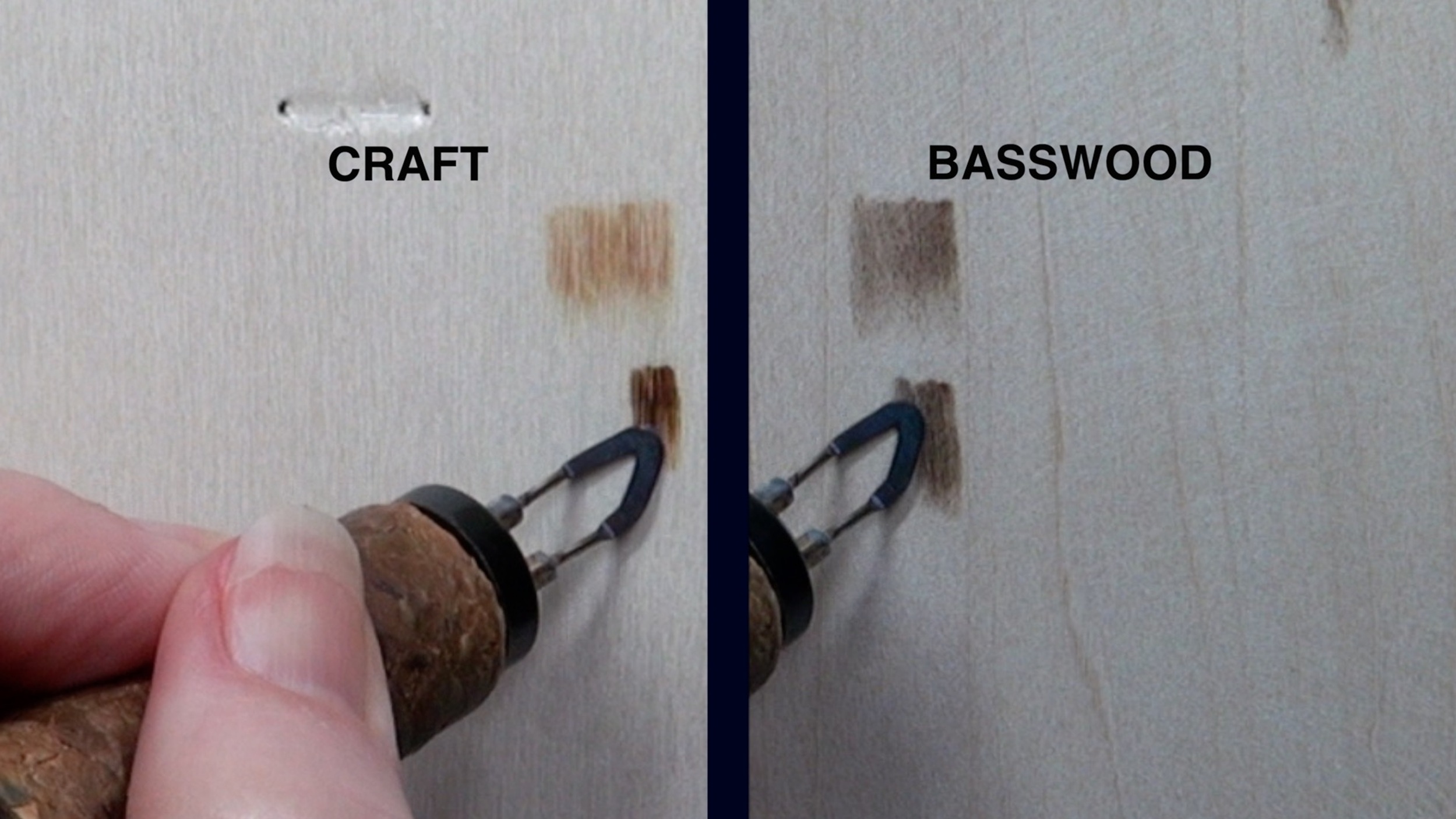 For my first demonstration will be comparing a craft board against basswood board. In the composite photo, the board on the left side is a craft board I bought at a craft store. I have no idea what type of wood the craft board is made out of. The label doesn’t say.
