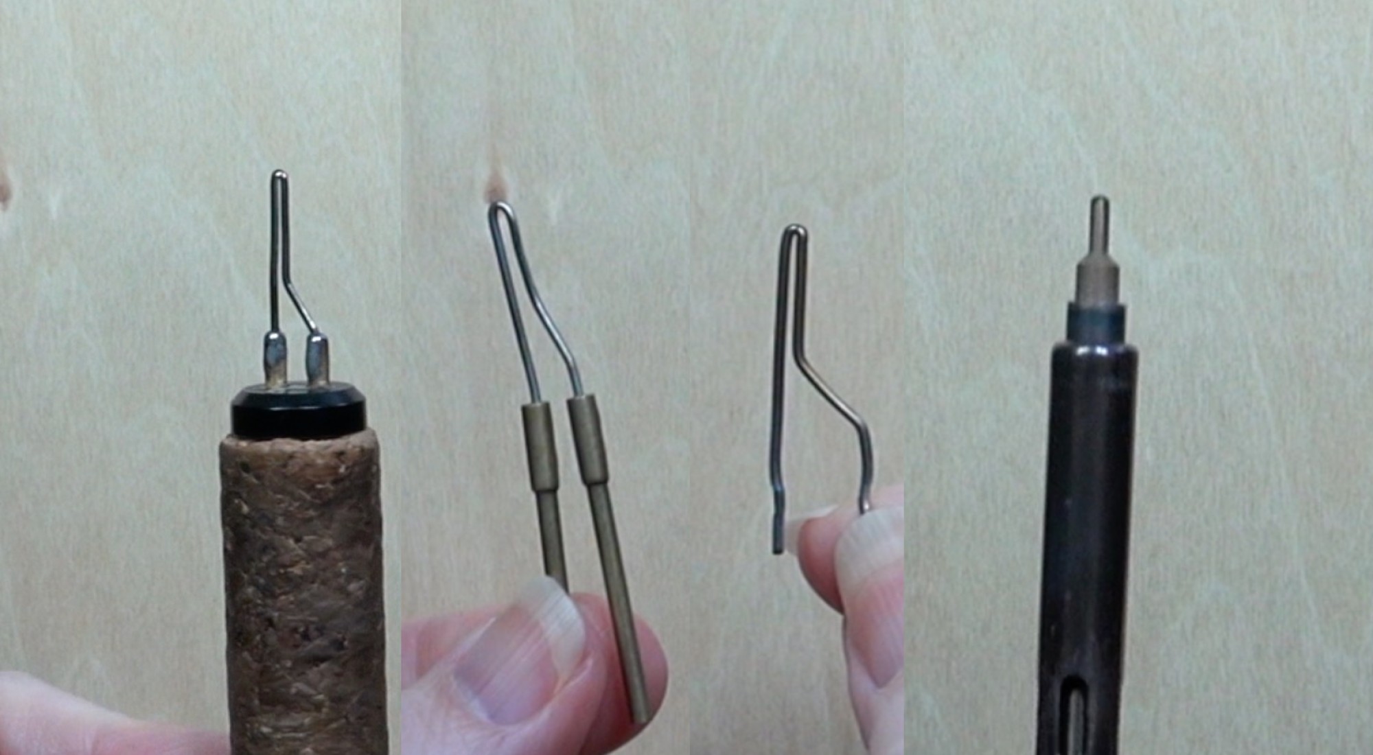 From left to right the nibs are Colwood standard writer, Burnmaster writer, unmounted wire nib writer, and a brass nib.