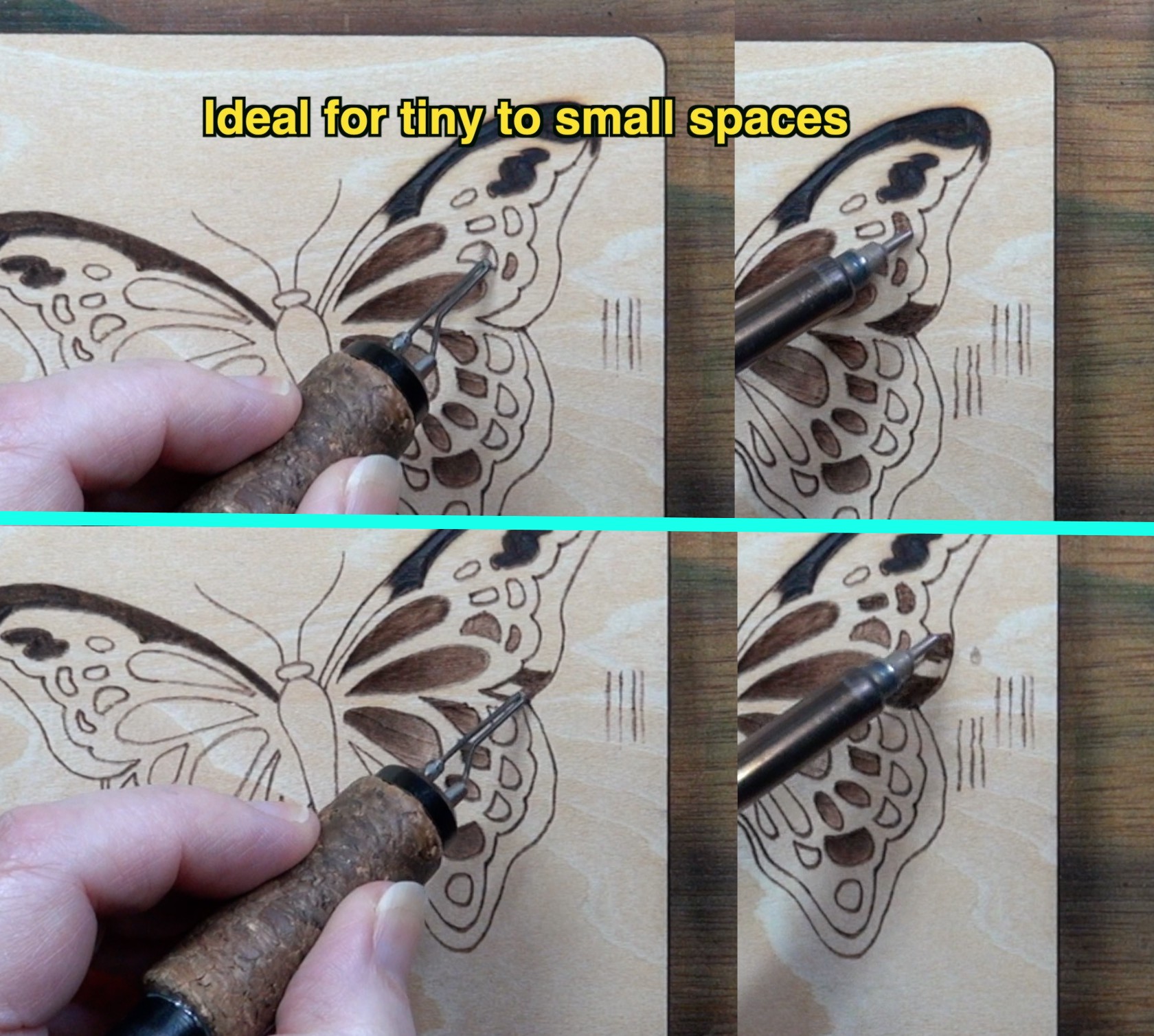 In this composite photo I have turned down the heat on my burner. Overburn is no longer an issue, and I can easily stay within the boundaries of smaller marking.