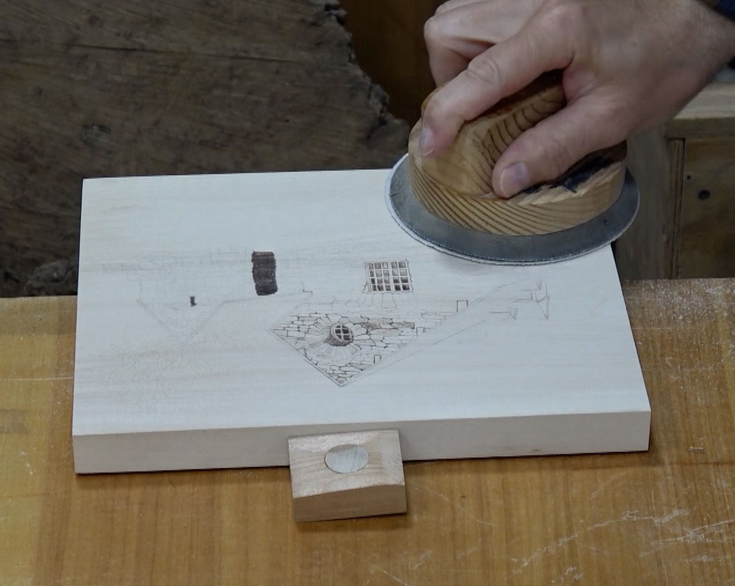 When I use the zigzag burn stroke, I’m using the side of the shader which is super thin. Because it is so thin, it is prone to sinking into the wood surface. This makes it even more important to use a light hand pressure.